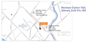 • Monk Bar Car Park, YO31 7QR – 24hr parking, 5 min walk to the hall
